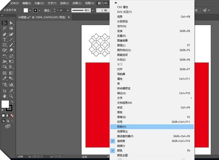 1、今天我们学习AI路径的属性——图案啦,打开色板先