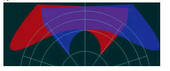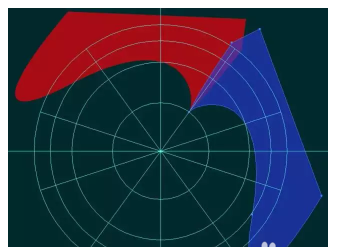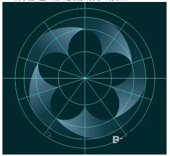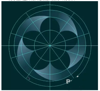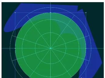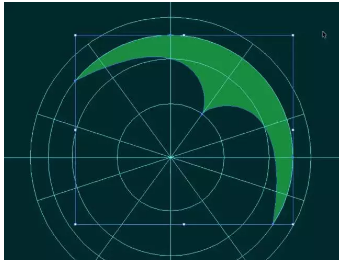 4、我们需要将创建好的极坐标网格移动至参考图上,将其稍微放大一圈,并调整其颜色为蓝色以便区别,选择所有对象,将其复制一个移至右侧,将背景参考图片删除,选择所有的参考线,执行菜单“视图>参考线>建立参考线”命令,并执行菜单“视图>参考线>锁定参考线”命令,将其创建为参考线并锁定,以便后续绘制标志使用,如下图所示。