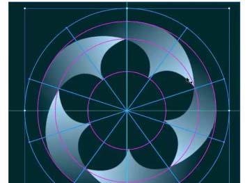 12、最后为绘制好的图形添加一个渐变颜色,如下图所示。接着使用“旋转工具”对其进行旋转复制,得到效果,如下图所示。到这里整个制作就完成了。