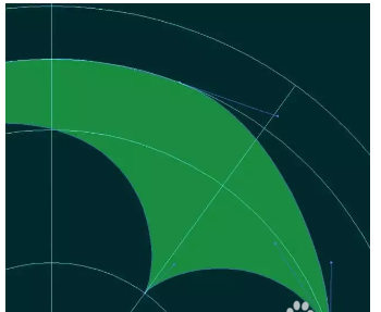 6、首先标志是由五个部分组成,先以一个部分为例进行分解,图形主要确定好三个关键点,调节圆弧即可,如下图所示。
