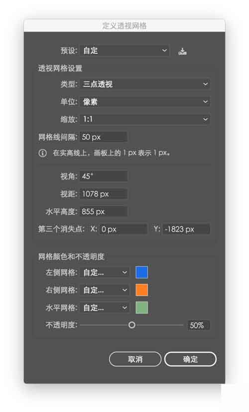 视图-透视网格-三点透视,打开透视网格,调节三个灭点到需要的位置,建议竖直方向灭点放在左右灭点中线上较远的位置