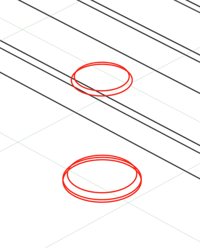 步骤 4,补全结构线。可以看到,该旋钮是由圆柱体和圆台构成,除了上下底面的圆形结构线,还需要绘制侧面的线条(腰线)。