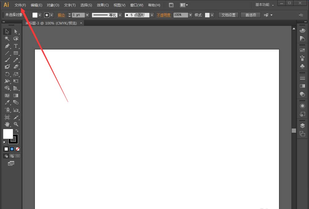 1、打开AI。点击左上方的文件,选择新建,建立一个纵向画布。新建快捷键为“Ctrl+N"。