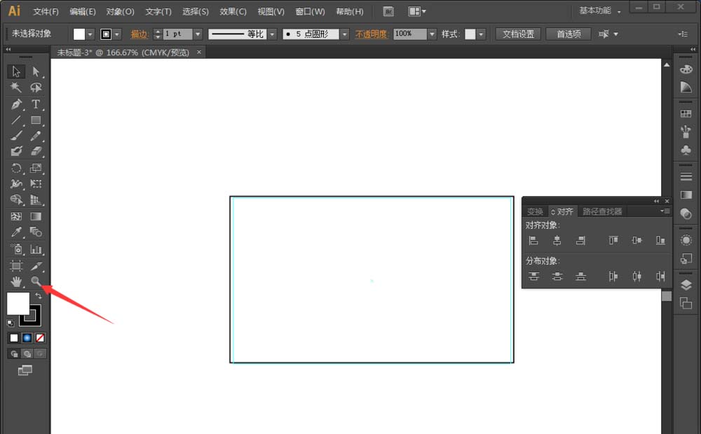 4、由于名片太小,我们先进行放大,方便操作。点击箭头所指的放大工具,扩选一下我们画的举行即可放大。点击较小的矩形——右键——建立参考线。