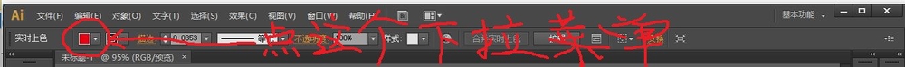 4、选择填充颜色--点击AI界面对话框左上角的颜色选项,选择自己需要的颜色。具体位置如图中红色圈所示。