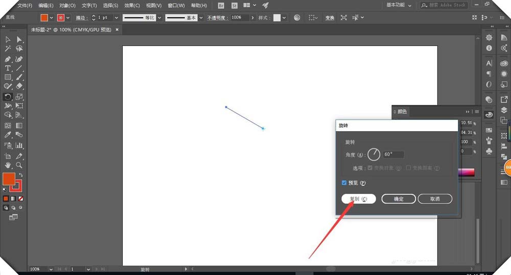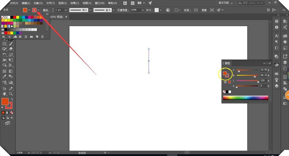 2、直线工具画一条直线,除了在属性那调描边色,也可按X键调换背景色和描边色