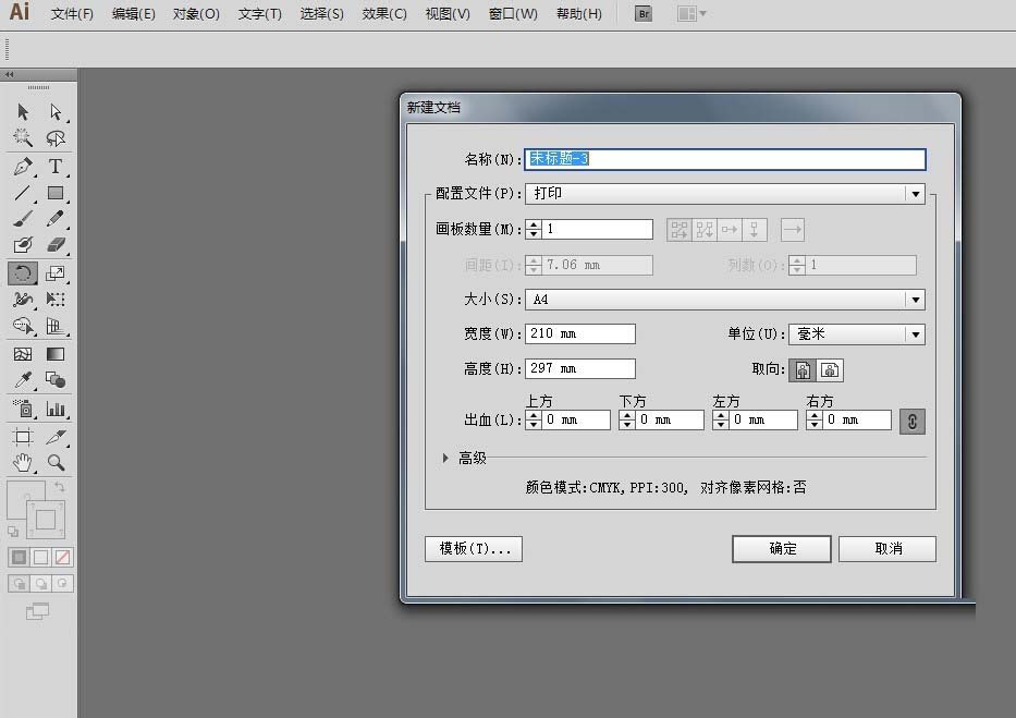 1、任意新建一个自己合适的画布,设置其大小、方向等