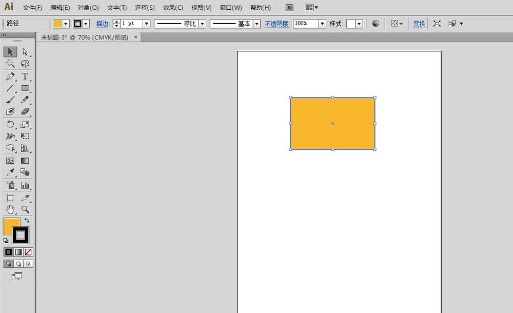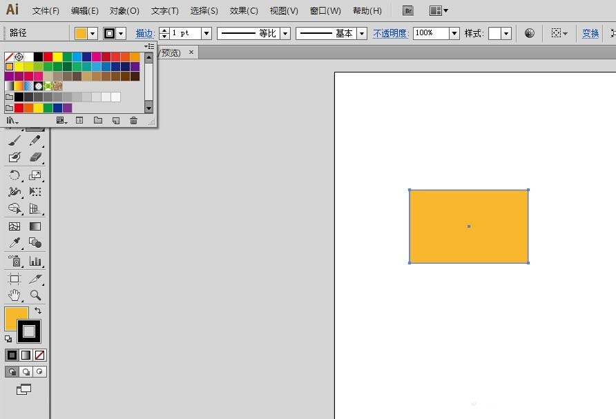 2、在这里,我们任意选择一种颜色,比如橙色,使用矩形工具,在画布上随意绘制一个矩形