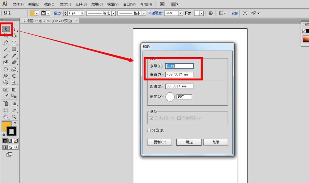 4、假如我们想要的是原地复制出另一个图形,那么,我们就把上面的水平、垂直都改为0