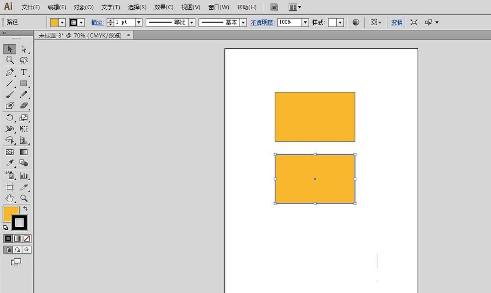 5、当我们点击完复制按钮以后,我们会看到画布上其实有两个重叠位置的橙色矩形的。
