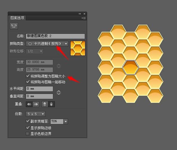 10、再复制几个深色的六边形,随意的置于其上,最终得到,有兴趣再画一个蜜蜂在上面,就完成了一副作品。不过蜜蜂的做法,相对复杂,我将在后续的实例讲解!