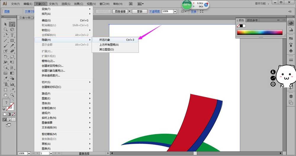 6、选中江西卫视LOGO,菜单-对象-隐藏-所选对象