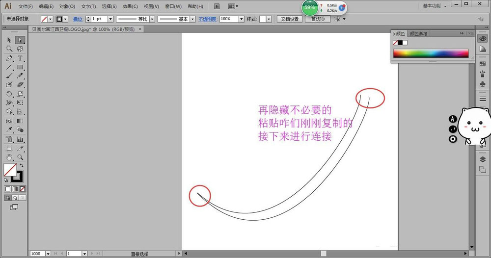 7、隐藏不必要的对象,在用直接选择工具选中锚点,菜单-对象-路径-连接开放锚点,使它们闭合