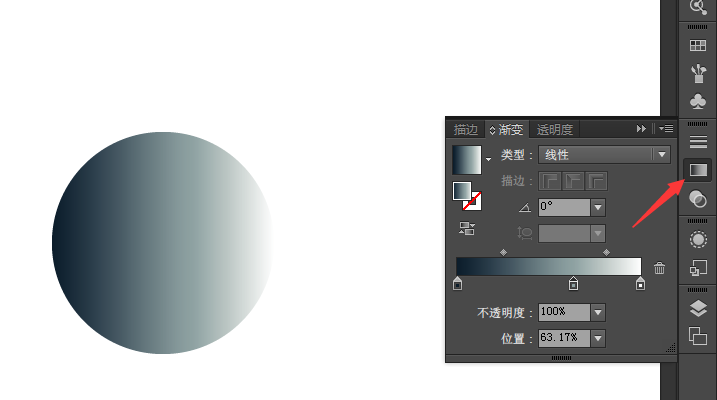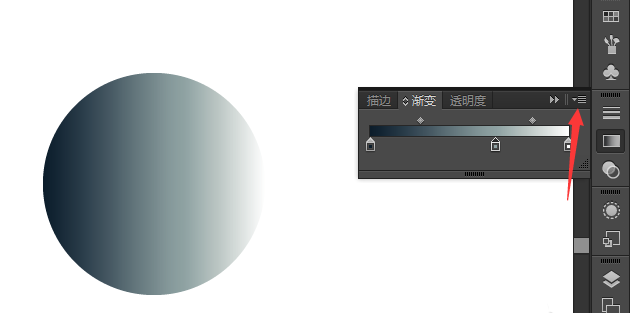 2、所以我们需要按照图一,找到右边面板的渐变面板,如果你是像图二那样只是简单的面板,就需要点击右上角的选项,显示完整的选项。