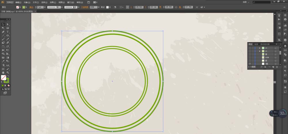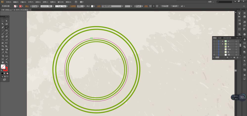 1、打开AI,新建画布。制作印章轮廓:用椭圆工具创建合适大小的正圆描边填充。复制3个并调整大小(印章的样式可自由设计)。这里我共创建4种,详见后面步骤图