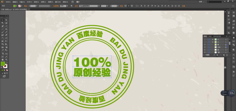 4、完成图章制作:在图章中间输入文字。至此图章创建已完成。