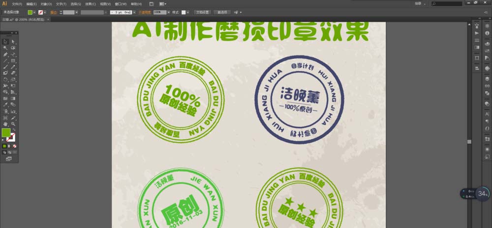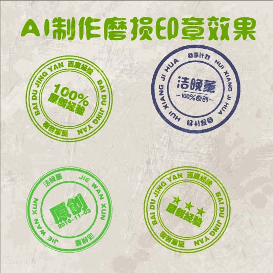 5、右键编组并复制3个,改动文字以及图章轮廓,完成其他3个图章制作。