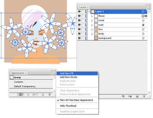外观面板显示了用于一层有什么影响。 您可以添加新填充或添加新的中风整层或单个对象。