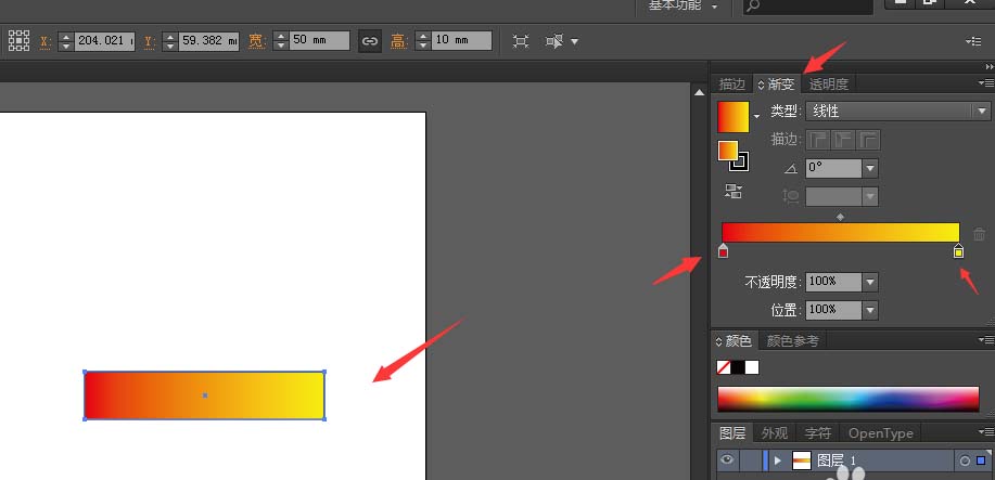 3、像之前的步骤一样,给矩形填充渐变色