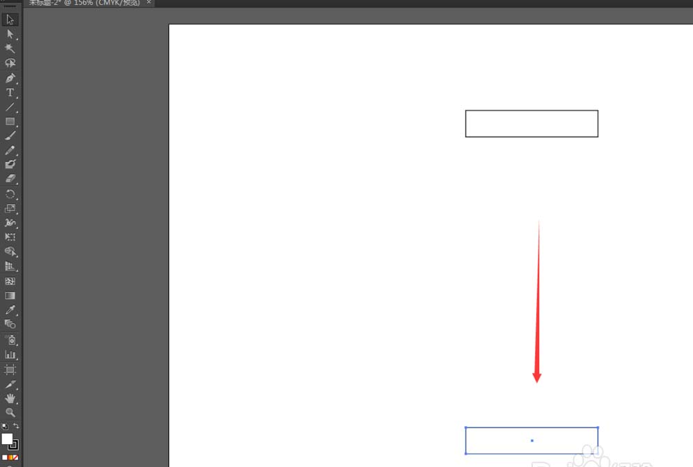 1、建立一个矩形后,鼠标左键按住不放,然后同时按住ctrl和shift键,向下拖动到适合位置放开,复制一个新矩形。