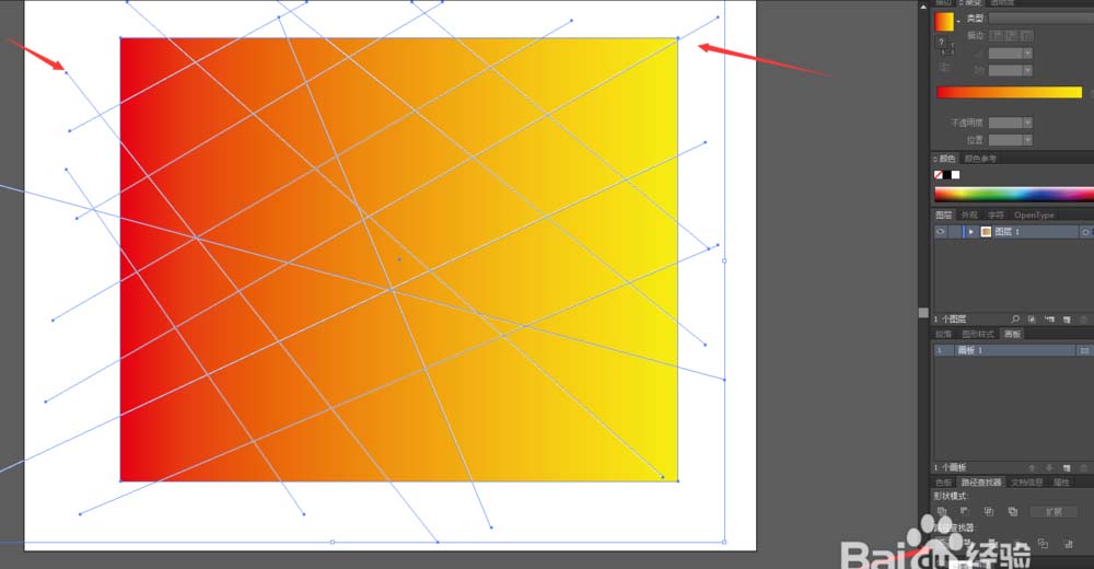3、画出充足的直线后,把图案全部框选,点击路径查找器的分割。