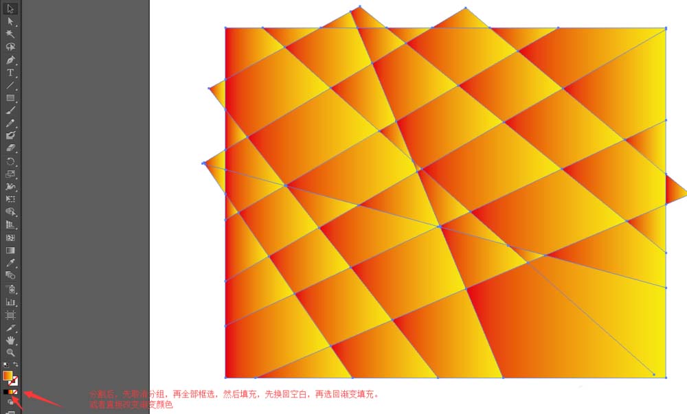 4、或者点击渐变工具,打开渐变窗口。进行颜色选择