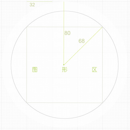 这是一个大概的预设图。圆半径为80整个圆正好占用五个32px网格。图形总元素基本尺寸(单位:px),矩形椭圆宽:20,40,70. 长:60,80. 描边大小:2,4,6 圆角:2,4,6