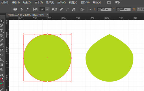 调整顶部锚点手柄变圆滑。再尝试挑中中部左右锚点手柄的上部是过度自然。