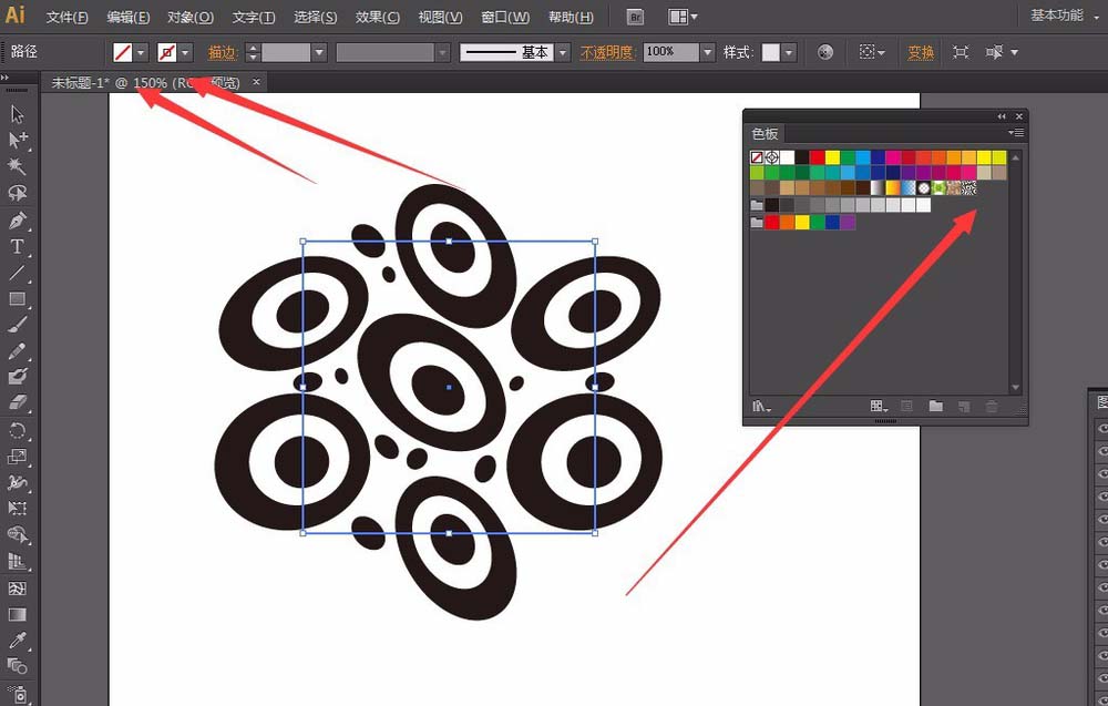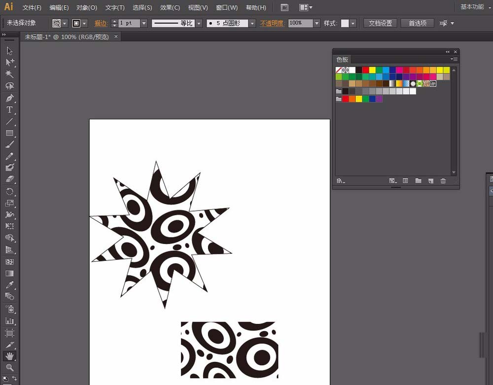 8、应用刚才创建的色板,可以看到色板被应用到各种各样的图形上。此时可以看到所有贴进去的图形都是无缝拼贴的。