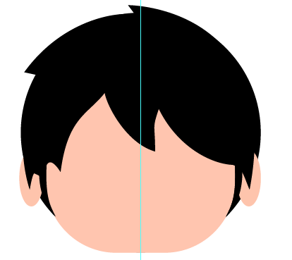 3.头发:新建一个170px*170px的正圆,颜色为纯黑,置于底层。再勾勒出头发,注意耳朵部位有的头发在耳朵前面,有的在耳朵后面。