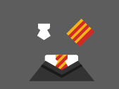 9.领带:用钢笔工具画一个白色领带,然后画一个#D12926和一个#F6B415的矩形,相间、编组、置于白色领子上层,选择两者右键进行剪切蒙版。