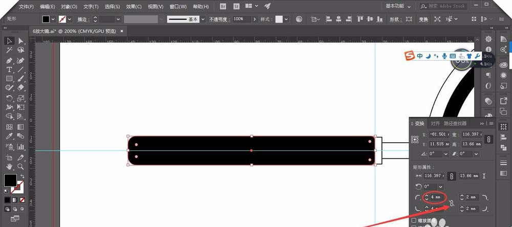 AI怎么将圆角矩形变成直角矩形?