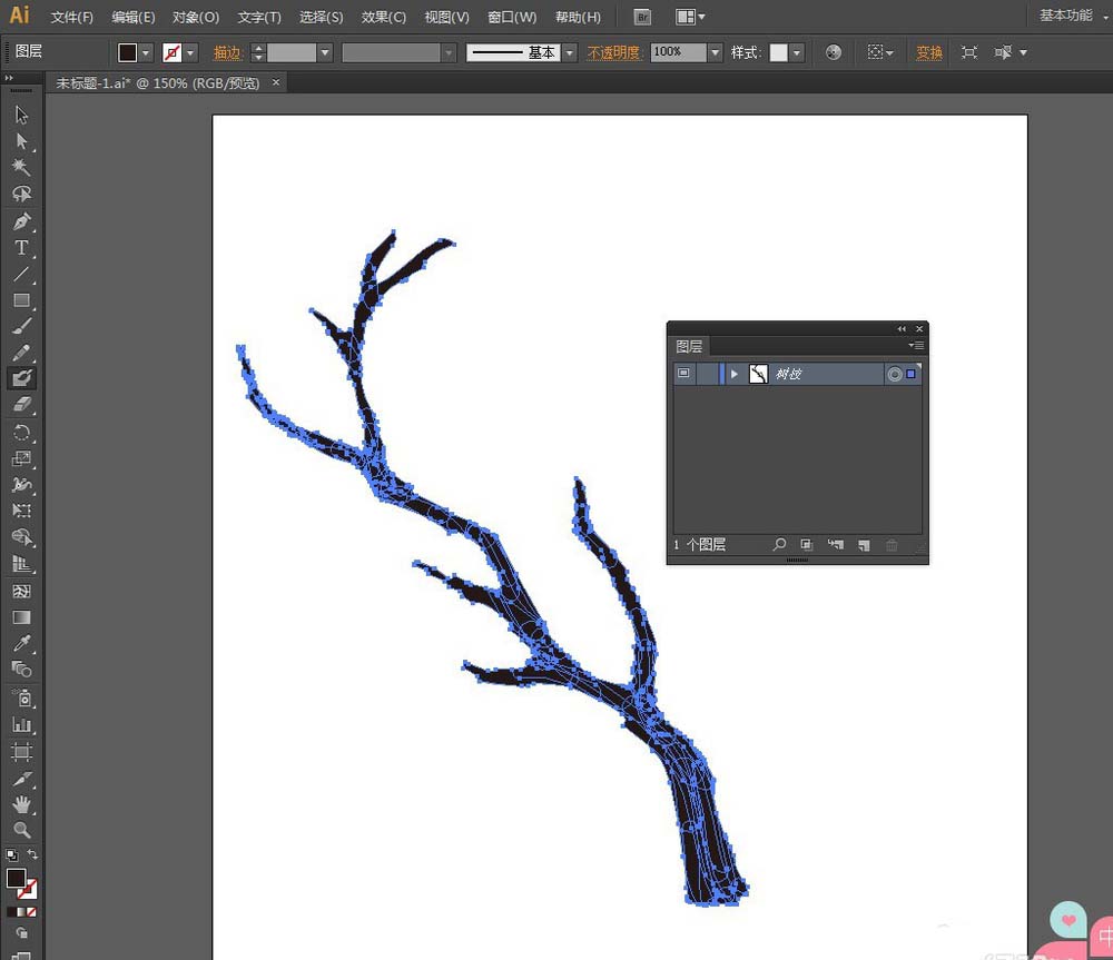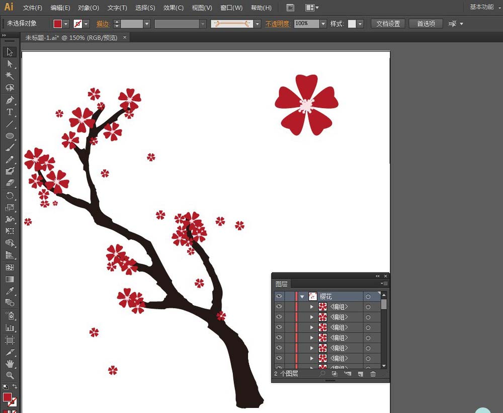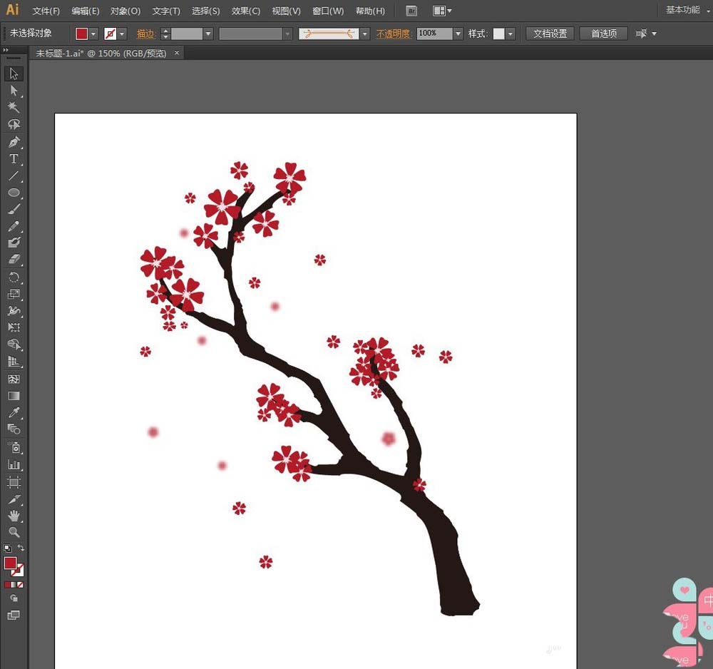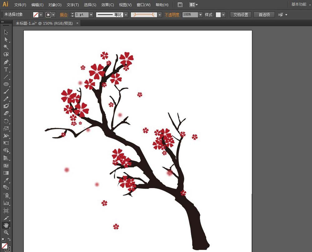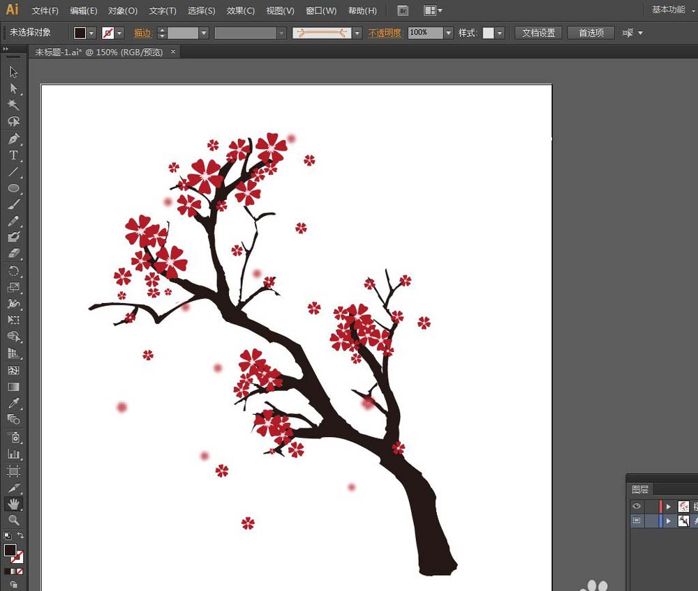 AI里的【斑点画笔工具】和【橡皮擦工具】对于绘制树杈是非常有用的,下面我们就来介绍一下如何利用【斑点画笔工具】和【橡皮擦工具】绘制好看、美观的樱花树。
