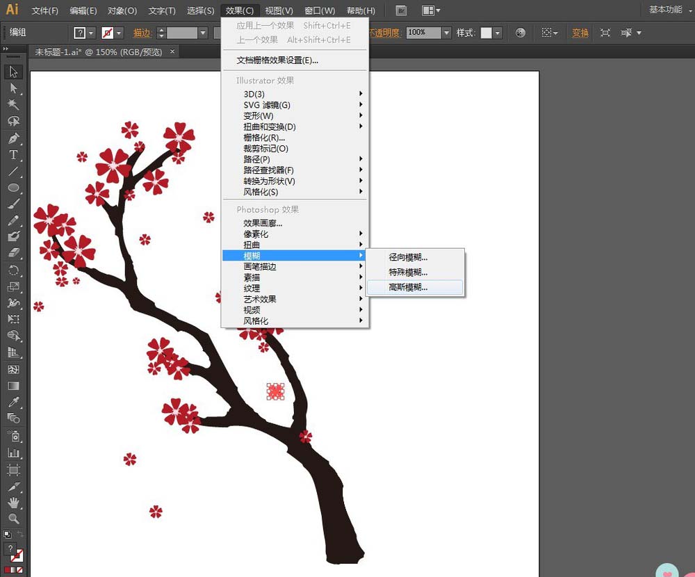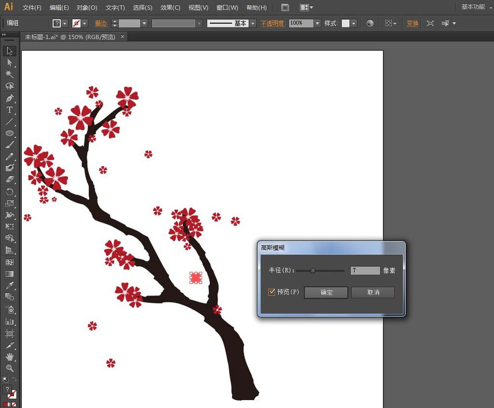 10、选择其中一个花瓣,执行【效果】菜单——模糊——高斯模糊,弹出【高斯模糊】窗口:勾选【预览】,半径:7,确定,然后再多复制几个,看上去像风吹散的感觉。
