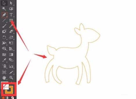 2、用钢笔工具画小鹿的大概模型,背景色设置为黄色,这个的话,要求我们一气呵成,我们要多练习下钢笔的用法,那样我们才能画出我们可爱的小鹿。