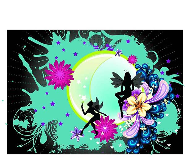 20、绘制星星填充粉色。颜色C=52 M=97 Y=10 K=0;并复制多个。放在不同位置。大小不一。