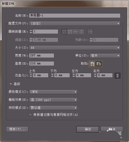 1、新建一文档文档为横向,A4大小。模式为cmyk.如图。