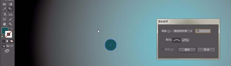4、框选两个对象,选择混合选项。双击混合工具。选择指定步数35或36.然后单击两个对象。然后在对象-->扩展,点击确定。