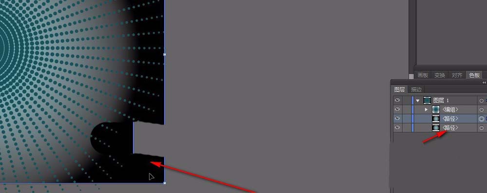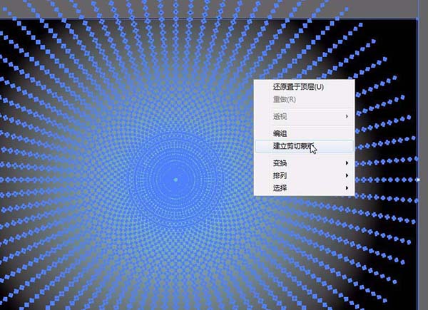 7、选中底层图层,ctrl+C;ctrl+f;复制一层。然后右键排列-->置于顶层(ctrl+shift+])。按住shift键,加选放射图形。右键-->剪切蒙版。背景做好了。