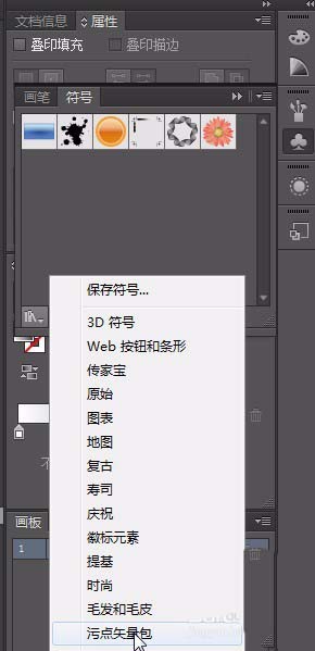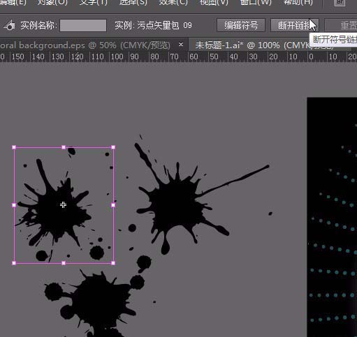 16、选择符号-->左下角点击污点矢量包。选择需要的矢量图,点击断开联接。在对象里找到扩展点确定。如图。