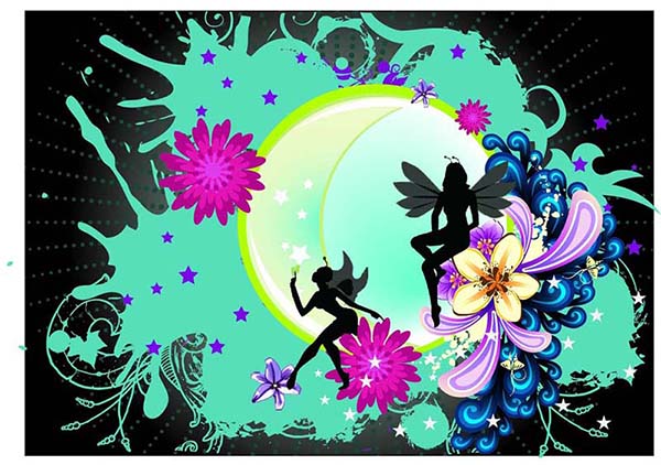 21、绘制星星,按住shift+alt绘制正五角星。填充白色放在不同位置,大小不一。绘制完成。看下效果吧。