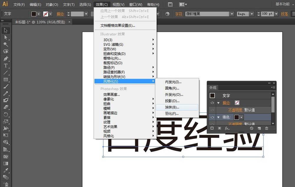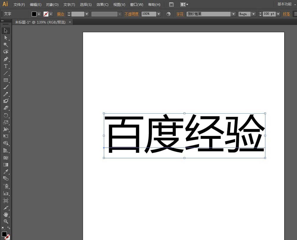 1、使用【文字工具】在画板上输入文字,这里我使用的是微软雅黑字体,选择无填色,无描边。