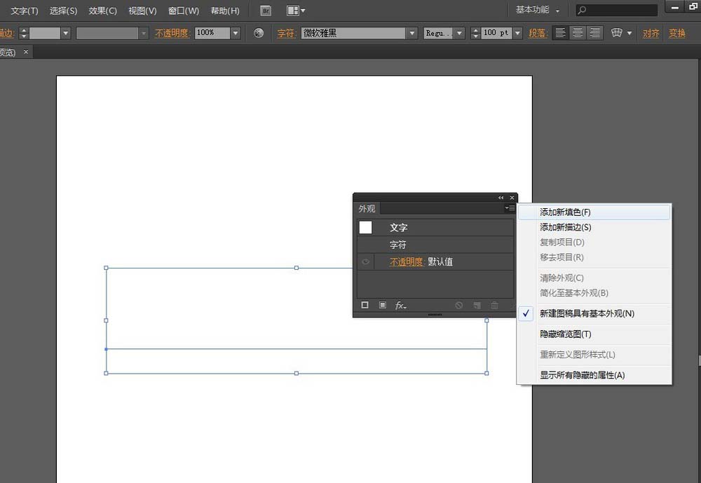 2、选中无填充、无描边的文本,打开【外观】面板,在【外观】面板中添加新填色,保持默认的黑色填充。