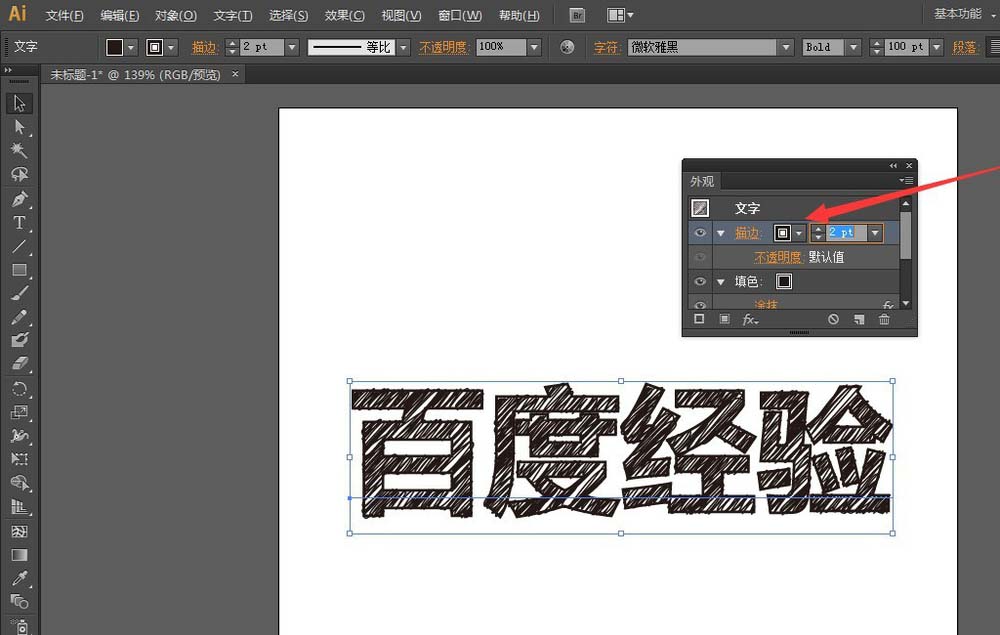 5、调用【外观】面板:描边:选择黑色,描边宽度:2px