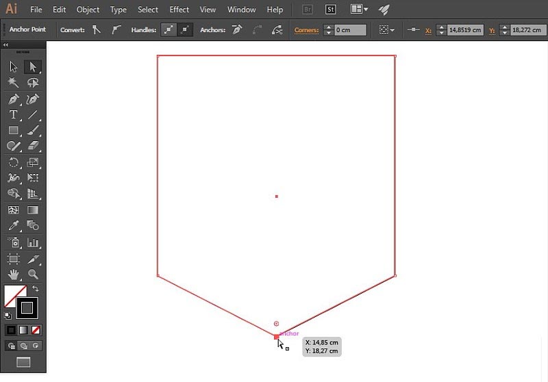 第3步、确保已激活智能参考线(视图>智能参考线)。选中矩形形状。用钢笔工具,点击其下边缘的中心来添加新的锚点。