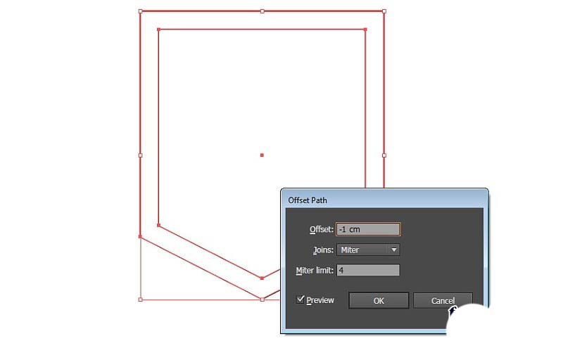 第5步、选中形状,点击对象>路径>偏移路径。设置负偏移值,直到我们做出外框形状。确保 预览 选项是已经选择的,你才可以实时查看最终结果。