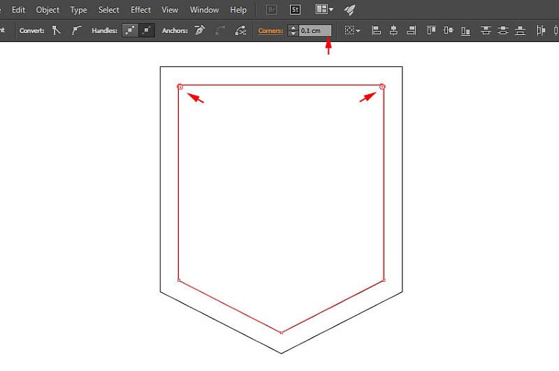第6步、用直接选择工具,选择顶部的两个锚点。从选项栏添加很小的圆角值。