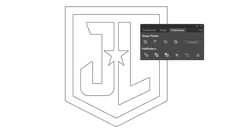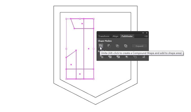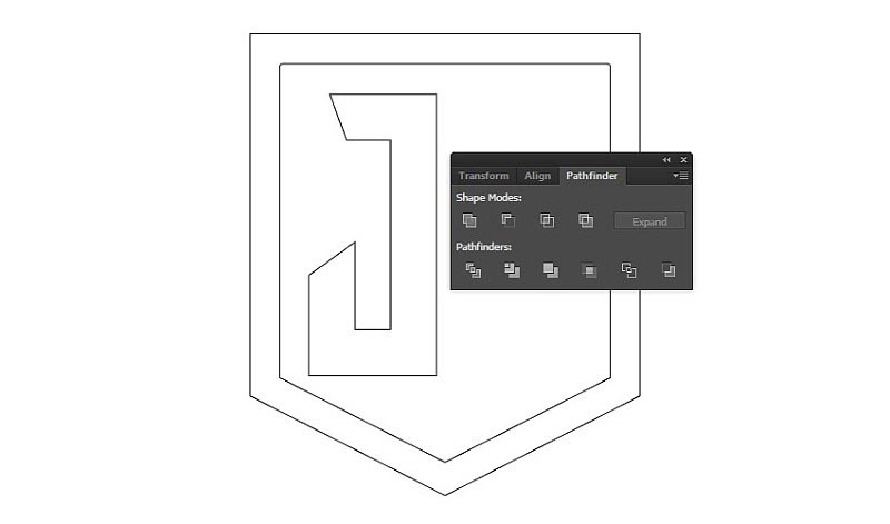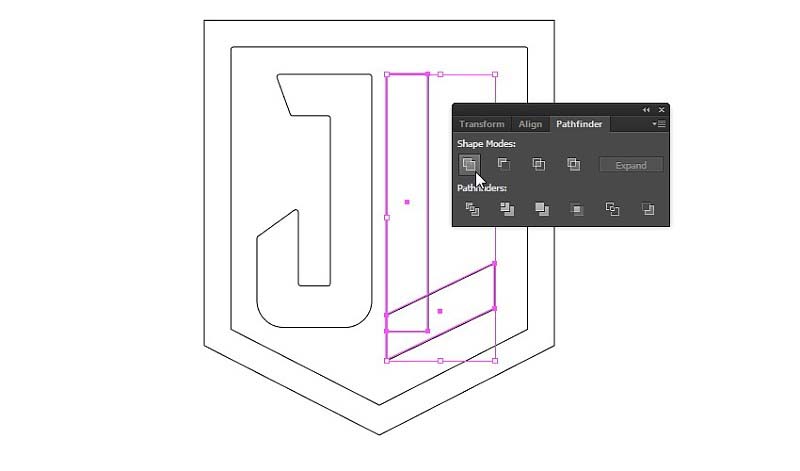 第10步、一旦有你满意的结果,我们需要将所有的形状合并成一个字母Ĵ。选择形状,然后在路径查找器面板上点击联集。
