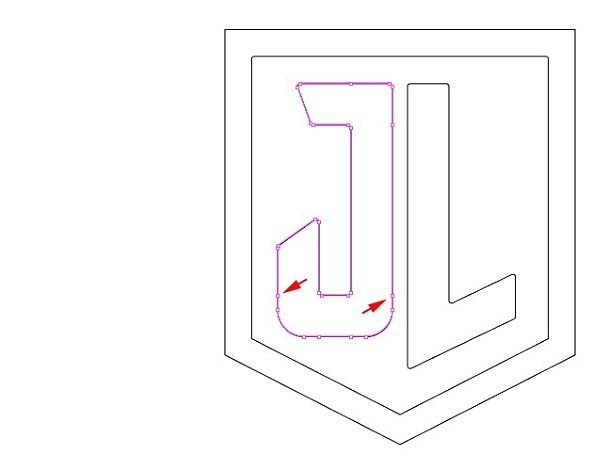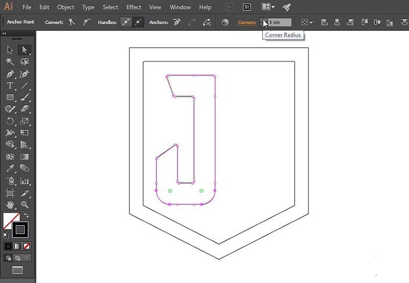 第12步、给J字母的下部的两个锚点添加更大的圆角值。