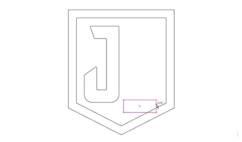 第7步、我们完成了外框的构建,接下来我们继续构建这些字母。你可以尝试搜索与原字形匹配的字体,但在本教程中,我们将从头开始绘制它们。我们开始做一个矩形,作为J字母的基础。